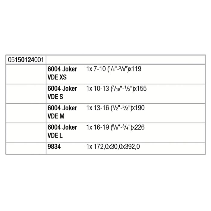 帳號 : 密碼 : 登入 忘記密碼? | 加入會員 硬漢-鉗子 01-06系列 Professional Pliers01系列-鋼絲鉗Combination Pliers02系列-尖嘴鉗Long Nose Pliers03系列-斜口鉗Diagonal Cutting Pliers04系列-德式水管鉗Water Pump Pliers05系列-日式水管鉗Water Pump Pliers06系列-塑膠斜口鉗Plastic Cutting Pliers硬漢-鉗子 07-13系列 Professional Pliers07系列-小鋼剪Compact Bolt Cutters08系列-棘輪壓著鉗Ratchet Crimping Pliers09系列-電子斜口鉗Diagonal Cutting Pliers10系列-電子尖嘴鉗Long Nose Pliers11系列-剝線斜口鉗Diagonal Cutting Pliers13系列-穴用卡環鉗Snap Ring Pliers-Internal硬漢-鉗子 14-19系列 Professional Pliers14系列-軸用卡環鉗Snap Ring Pliers-External15系列-破壞剪Bolt Cutter16系列-萬能鉗Grip Pliers17系列-鯉魚鉗Slip Joint Pliers18系列-剝皮鉗Automatic Wire Stripper19系列-鐵皮剪Straight Cut Snio硬漢-鉗子 20-24系列 Professional Pliers20系列-多功能剝線鉗Wire Stripper Pliers22系列-鋼索剪Wire Cutter Pliers23系列-打孔鉗Punch Pliers24系列-萬能角度剪Universal Angle Shears 硬漢-切管工具Professional Cutters電纜剪Cable Cutters水管剪PVC Pipe Cutters切管器Copper Pipe Cutters修邊刀Reamer美工刀Professional Knife硬漢-測量工具Professional Measurement捲尺Professional Measurement硬漢-扳手Professional Wrench專利防滑牙六角扳手Hex Key Wrench(Anti-Slip)專利扭轉型六角扳手Hex Key Wrench棘輪梅開扳手-直型High Torque Ratcheting Wrench棘輪梅開扳手-搖頭式High Torque Ratcheting Wrench搖頭式棘輪扳手Wrench特大開口活動扳手Adjustable Open WrenchT型六角扳手T-Handle hexdriver硬漢-起子/套筒/起子頭/鑽尾Socket/Bits/Drilling硬漢起子Screwdrivers雙頭起子頭Double End Power Bits磁性套筒Magnetic Nut Driver套筒工具組1/2DR Socker Wrench Set鑽尾Drilling鑽兼鎖Drill Bits with Socker Set起子頭 Bits圓穴鋸Hole Ssw硬漢-花剪Professional Gardening Shear硬漢花剪Professional Gardening Shear硬漢-工作背心Professional Work Vests工作背心Professional Work Vests德國【Wera】Wera 工具樂高系列Wera 專業工具套裝Wera 專業級陳列架組Wera 腳踏車工具套組Wera 獨眼怪/棘輪扳手/套筒扳手組Wera 套筒/套筒組Wera 專業輔助工具Wera IMP黑金鋼系列Wera 百變強力工具袋Wera 轉接頭系列Wera 工具車系列德國【Wera】怪牙起子系列Wera 十字起子(怪牙鍍鈦)350PH Screwdriver for Phillios screwsWera 一字起子(怪牙鍍鈦)334.335 Screwdriver for solotted screws德國【Wera】舒適型起子系列Wera 十字起子(舒適型1350PH Screwdriver for Phillios screwsWera 一字起子(舒適型)1334 Screwdriver for solotted screws德國【Wera】起子系列Wera 精密電子起子Kraftform Micro SeriesWera 星型起子Screwdriver for TORX® screwsWera 絕緣起子Krafrform Comfort VDEWera 不鏽鋼起子Screwdriver,Stainless SteelWera 敲擊起子Screwdriver for slotted screwsWera 棘輪起子Kraftform Kompakt RatschenWera 多功能起子Kraftform KompaktWera 扭力起子Kraftform Torque ScrewdriversWera 超值起子組Wera 特殊規格起子德國【Wera】扳手系列Wera 六角及星型扳手L-KeysWera T型扳手T-Handle SeriesWera 棘輪扳手RatchetsWera 聰明扳手JOKER WrenchesWera 扭力扳手系列Torque Wenches德國【Wera】起子頭Wera 十字起子頭 Bits for Phillips ScrewsWera 一字起子頭 Bits for Slotted ScrewsWera 六角起子頭 Bits for Hexagon Socket ScrewsWera 星型起子頭 Bits for TORX® ScrewsWera 米字起子頭 Bits for Pozidriv ScrewsWera 特殊規格起子頭 Bits for Special ScrewsWera 起子頭組 Bit-Check德國寶格花剪【BERGER】Gardening Shear德國花剪BERGER Gardening Sheat寶格斧頭BERGER Axe德國鋼鑿【RENNSTEIG】Masonry Chisels鋼鑿Masonry Chisels法國虎牙手鋸條【ULTRA】Hacksaw Blades雙金屬快速鋼德國剝皮刀【JOKARI】Precision Cable & Wire Stripping Tools德國JOKARI專利電纜剝皮刀Precision Cable & Wire Stripping Tools -- 您的購物車是空的 -- ~~歡迎光臨硬漢國際~~ ~~有任何想問的問題都歡迎到留言版提問~~ 搜尋 首頁 » 商品資訊 » 德國【Wera】 » Wera 工具車系列 » 德國Wera⼯具⾞絕緣Joker 6004 全型號4件套組 德國【Wera】 » Wera 工具車系列 商品編號 : 9734 德國Wera⼯具⾞絕緣Joker 6004 全型號4件套組 9734 05150124001 我要詢價 加入收藏