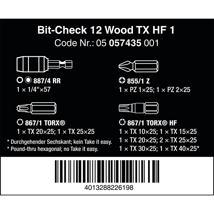帳號 : 密碼 : 登入 忘記密碼? | 加入會員 硬漢-鉗子 01-06系列 Professional Pliers01系列-鋼絲鉗Combination Pliers02系列-尖嘴鉗Long Nose Pliers03系列-斜口鉗Diagonal Cutting Pliers04系列-德式水管鉗Water Pump Pliers05系列-日式水管鉗Water Pump Pliers06系列-塑膠斜口鉗Plastic Cutting Pliers硬漢-鉗子 07-13系列 Professional Pliers07系列-小鋼剪Compact Bolt Cutters08系列-棘輪壓著鉗Ratchet Crimping Pliers09系列-電子斜口鉗Diagonal Cutting Pliers10系列-電子尖嘴鉗Long Nose Pliers11系列-剝線斜口鉗Diagonal Cutting Pliers13系列-穴用卡環鉗Snap Ring Pliers-Internal硬漢-鉗子 14-19系列 Professional Pliers14系列-軸用卡環鉗Snap Ring Pliers-External15系列-破壞剪Bolt Cutter16系列-萬能鉗Grip Pliers17系列-鯉魚鉗Slip Joint Pliers18系列-剝皮鉗Automatic Wire Stripper19系列-鐵皮剪Straight Cut Snio硬漢-鉗子 20-24系列 Professional Pliers20系列-多功能剝線鉗Wire Stripper Pliers22系列-鋼索剪Wire Cutter Pliers23系列-打孔鉗Punch Pliers24系列-萬能角度剪Universal Angle Shears 硬漢-切管工具Professional Cutters電纜剪Cable Cutters水管剪PVC Pipe Cutters切管器Copper Pipe Cutters修邊刀Reamer美工刀Professional Knife硬漢-測量工具Professional Measurement捲尺Professional Measurement硬漢-扳手Professional Wrench專利防滑牙六角扳手Hex Key Wrench(Anti-Slip)專利扭轉型六角扳手Hex Key Wrench棘輪梅開扳手-直型High Torque Ratcheting Wrench棘輪梅開扳手-搖頭式High Torque Ratcheting Wrench搖頭式棘輪扳手Wrench特大開口活動扳手Adjustable Open WrenchT型六角扳手T-Handle hexdriver硬漢-起子/套筒/起子頭/鑽尾Socket/Bits/Drilling硬漢起子Screwdrivers雙頭起子頭Double End Power Bits磁性套筒Magnetic Nut Driver套筒工具組1/2DR Socker Wrench Set鑽尾Drilling鑽兼鎖Drill Bits with Socker Set起子頭 Bits圓穴鋸Hole Ssw硬漢-花剪Professional Gardening Shear硬漢花剪Professional Gardening Shear硬漢-工作背心Professional Work Vests工作背心Professional Work Vests德國【Wera】Wera 工具樂高系列Wera 專業工具套裝Wera 專業級陳列架組Wera 腳踏車工具套組Wera 獨眼怪/棘輪扳手/套筒扳手組Wera 套筒/套筒組Wera 專業輔助工具Wera IMP黑金鋼系列Wera 百變強力工具袋Wera 轉接頭系列Wera 工具車系列德國【Wera】怪牙起子系列Wera 十字起子(怪牙鍍鈦)350PH Screwdriver for Phillios screwsWera 一字起子(怪牙鍍鈦)334.335 Screwdriver for solotted screws德國【Wera】舒適型起子系列Wera 十字起子(舒適型1350PH Screwdriver for Phillios screwsWera 一字起子(舒適型)1334 Screwdriver for solotted screws德國【Wera】起子系列Wera 精密電子起子Kraftform Micro SeriesWera 星型起子Screwdriver for TORX® screwsWera 絕緣起子Krafrform Comfort VDEWera 不鏽鋼起子Screwdriver,Stainless SteelWera 敲擊起子Screwdriver for slotted screwsWera 棘輪起子Kraftform Kompakt RatschenWera 多功能起子Kraftform KompaktWera 扭力起子Kraftform Torque ScrewdriversWera 超值起子組Wera 特殊規格起子德國【Wera】扳手系列Wera 六角及星型扳手L-KeysWera T型扳手T-Handle SeriesWera 棘輪扳手RatchetsWera 聰明扳手JOKER WrenchesWera 扭力扳手系列Torque Wenches德國【Wera】起子頭Wera 十字起子頭 Bits for Phillips ScrewsWera 一字起子頭 Bits for Slotted ScrewsWera 六角起子頭 Bits for Hexagon Socket ScrewsWera 星型起子頭 Bits for TORX® ScrewsWera 米字起子頭 Bits for Pozidriv ScrewsWera 特殊規格起子頭 Bits for Special ScrewsWera 起子頭組 Bit-Check德國寶格花剪【BERGER】Gardening Shear德國花剪BERGER Gardening Sheat寶格斧頭BERGER Axe德國鋼鑿【RENNSTEIG】Masonry Chisels鋼鑿Masonry Chisels法國虎牙手鋸條【ULTRA】Hacksaw Blades雙金屬快速鋼德國剝皮刀【JOKARI】Precision Cable & Wire Stripping Tools德國JOKARI專利電纜剝皮刀Precision Cable & Wire Stripping Tools -- 您的購物車是空的 -- ~~歡迎光臨硬漢國際~~ ~~有任何想問的問題都歡迎到留言版提問~~ 搜尋 首頁 » 商品資訊 » 德國【Wera】起子頭 » Wera 起子頭組 Bit-Check » 德國Wera⽶字星型HF彩⾊起⼦頭快速接桿(6⽀組) 德國【Wera】起子頭 » Wera 起子頭組 Bit-Check 商品編號 : BC TX/12HF 德國Wera⽶字星型HF彩⾊起⼦頭快速接桿(6⽀組) BC TX/12HF 05057435001 我要詢價 加入收藏